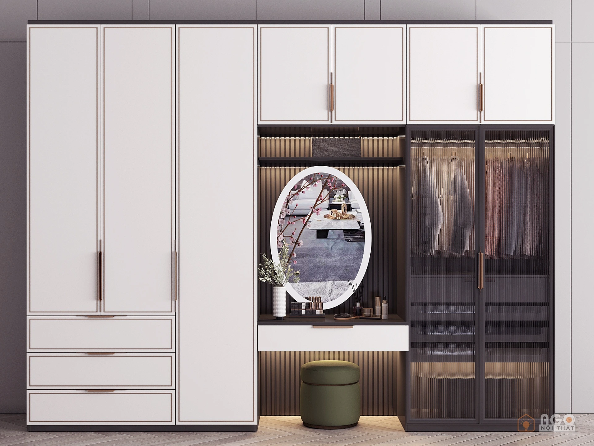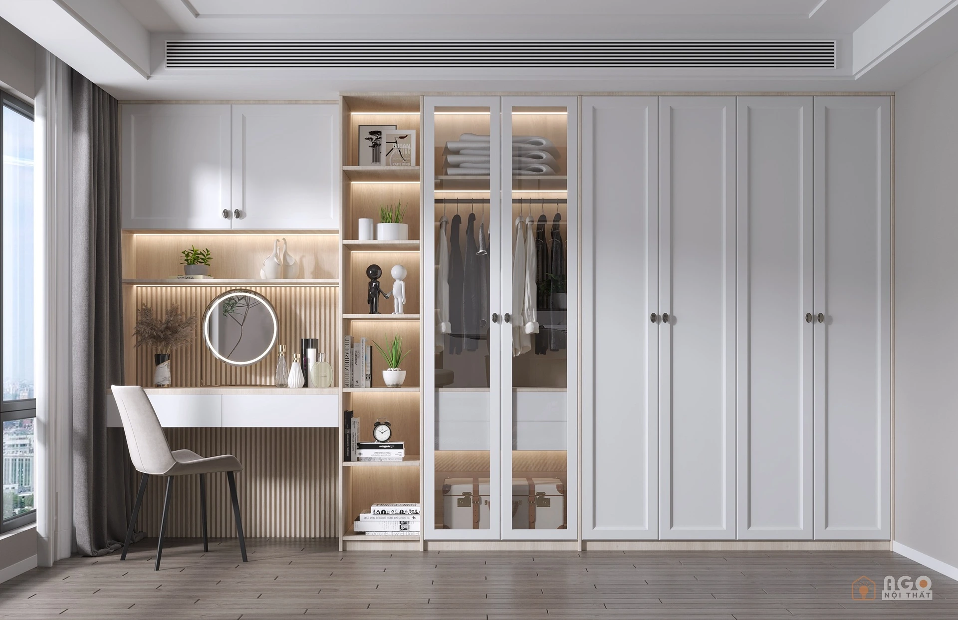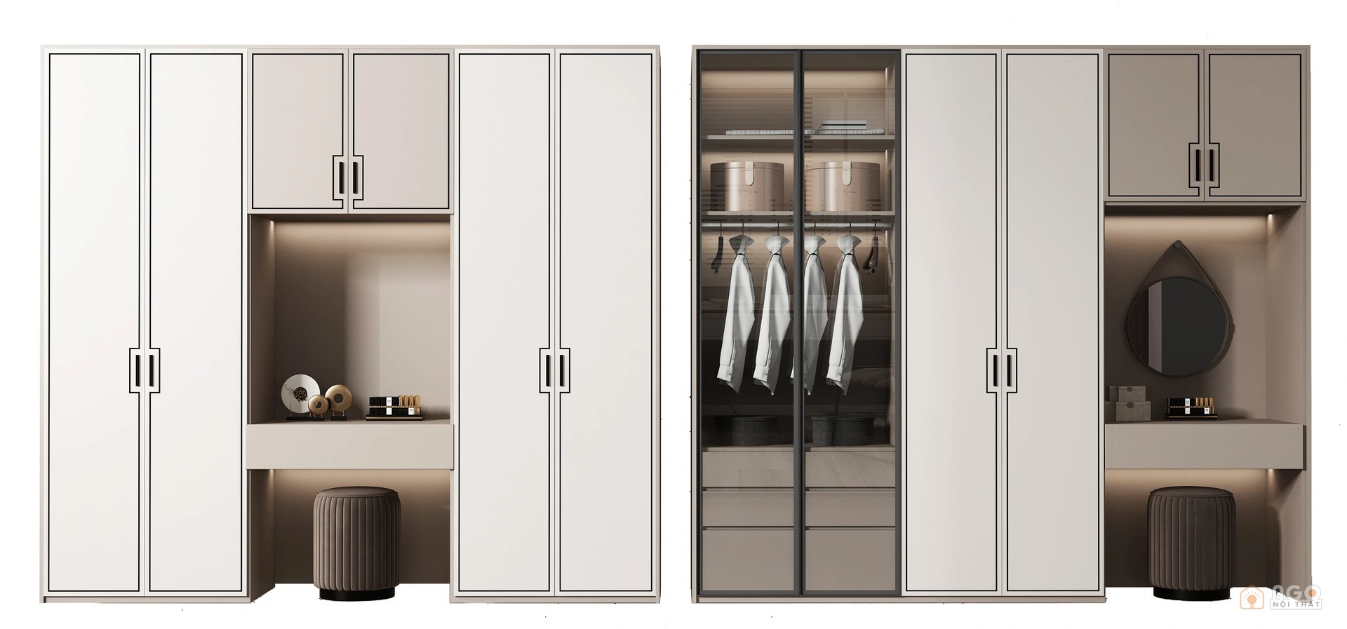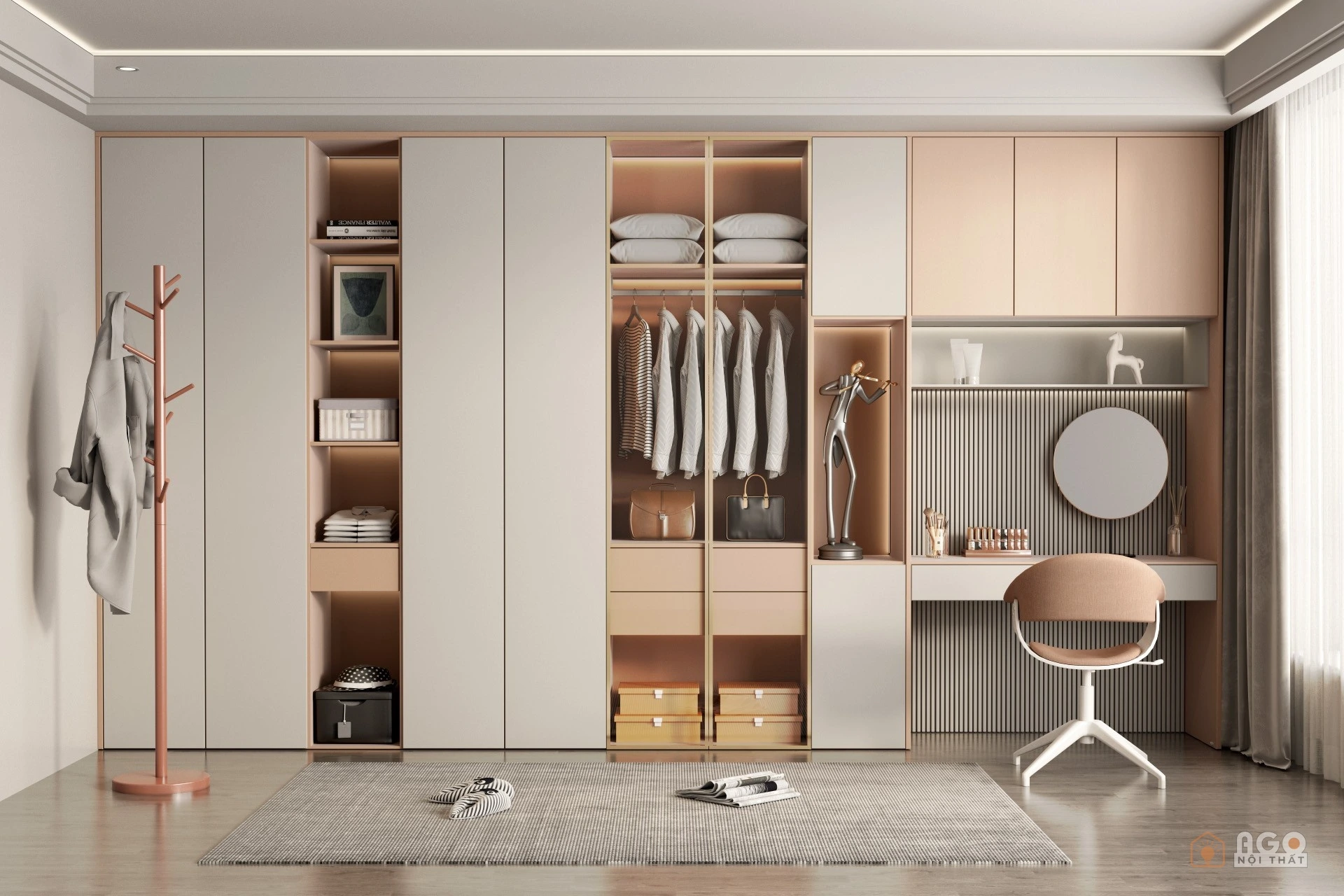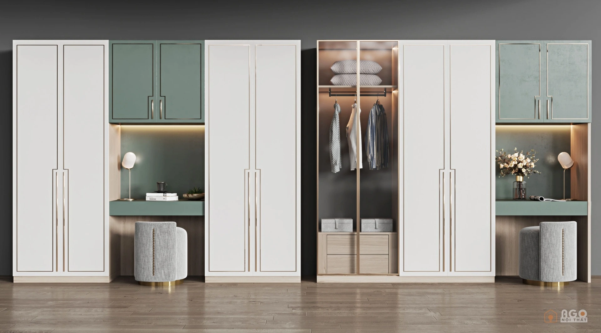Hệ tủ áo kết hợp bàn trang điểm hoặc bàn làm việc