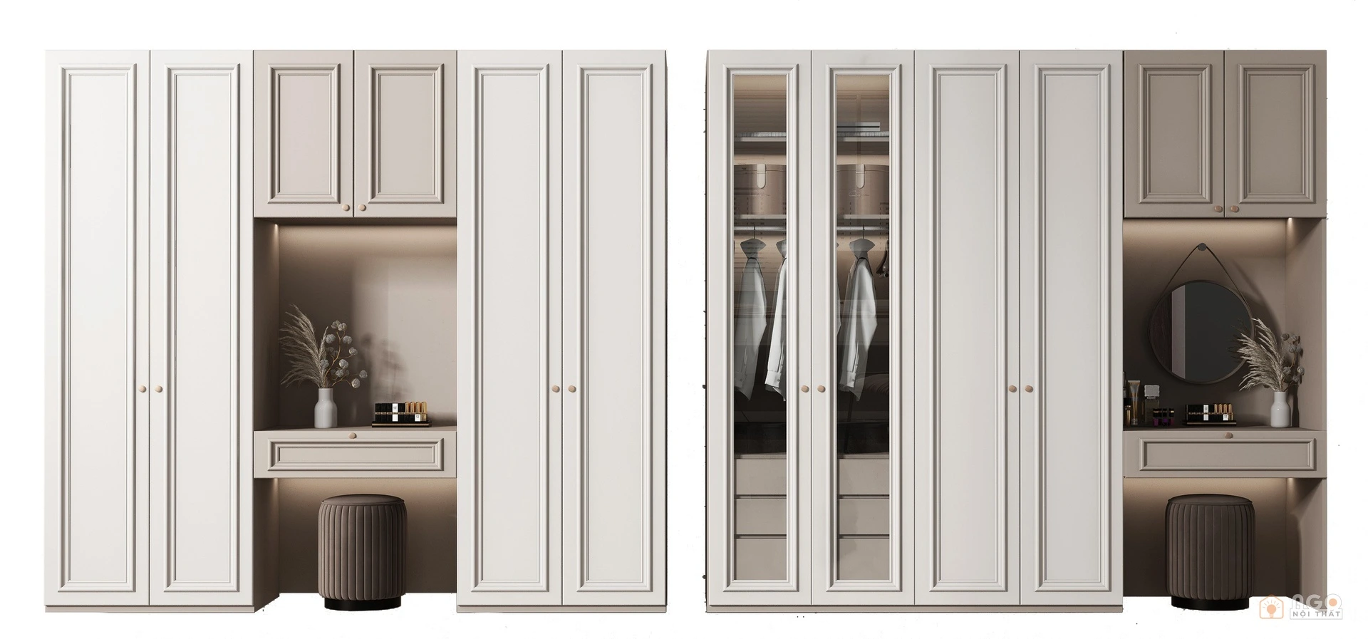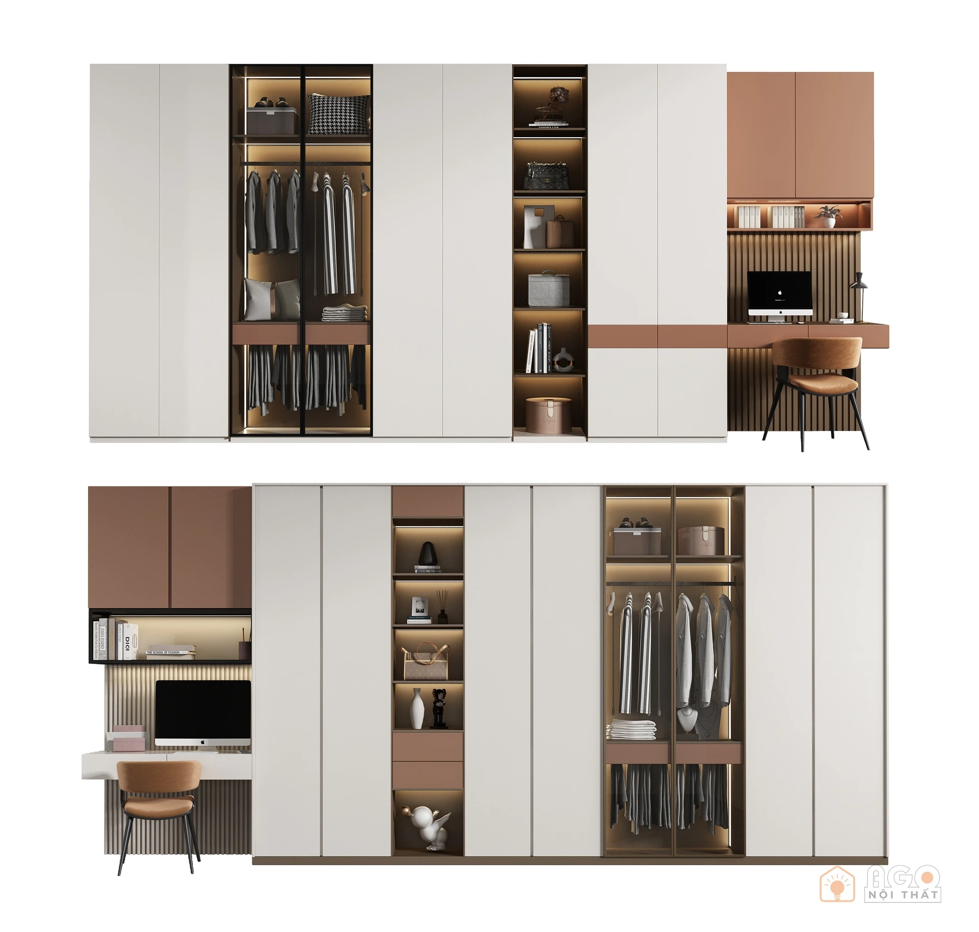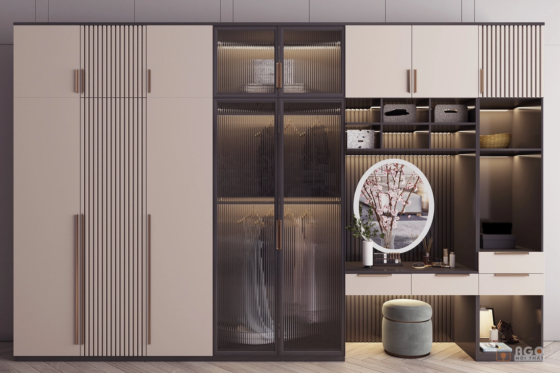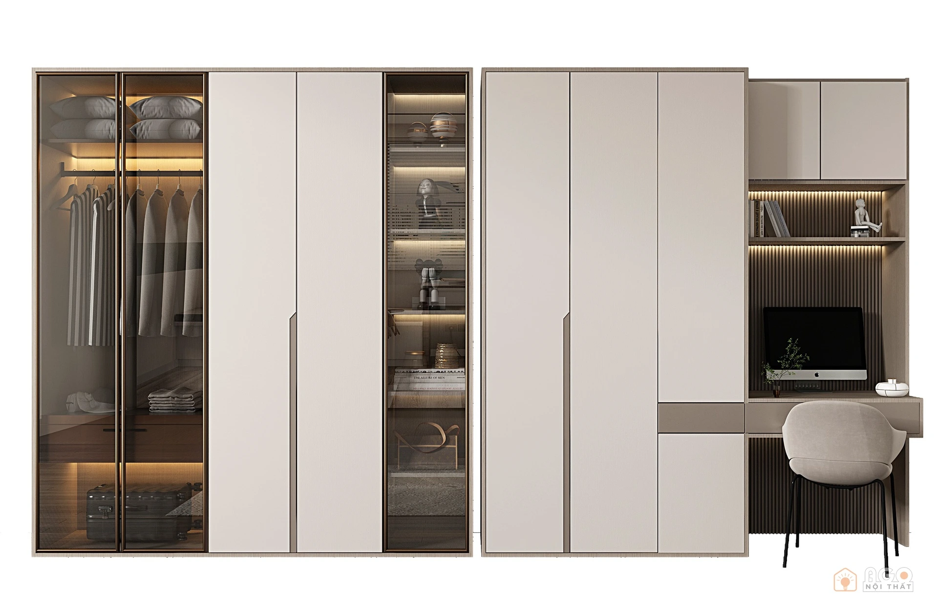 Hệ tủ áo kết hợp bàn trang điểm hoặc bàn làm việc