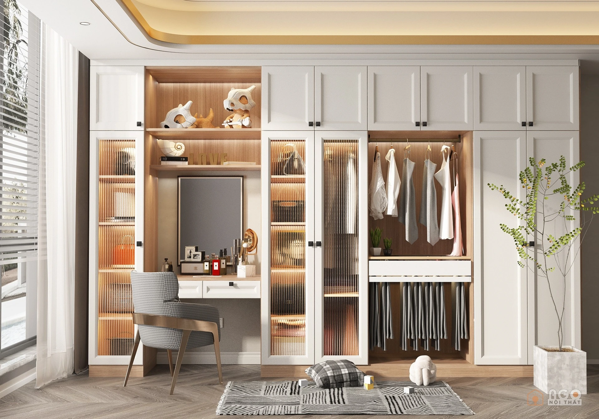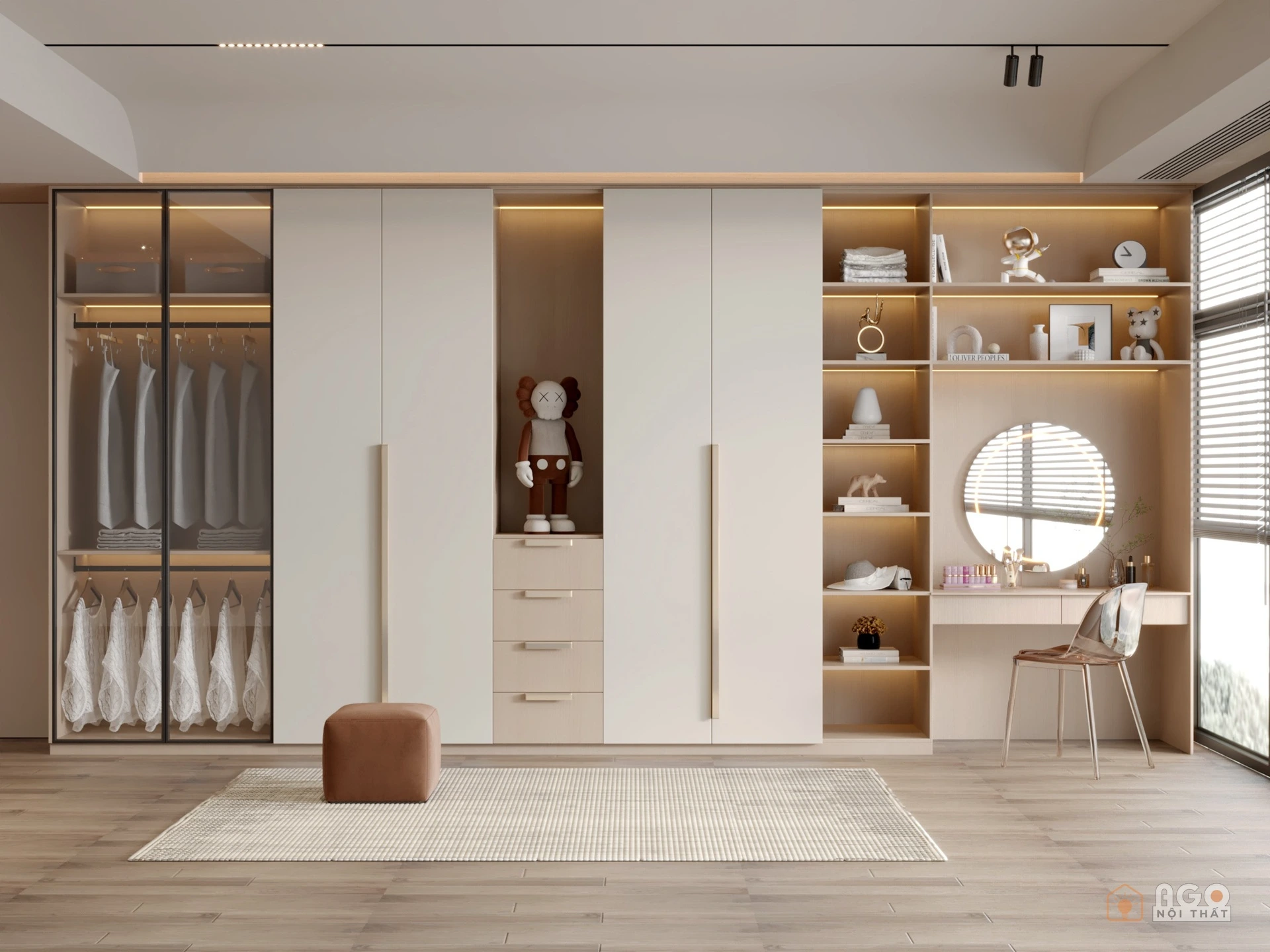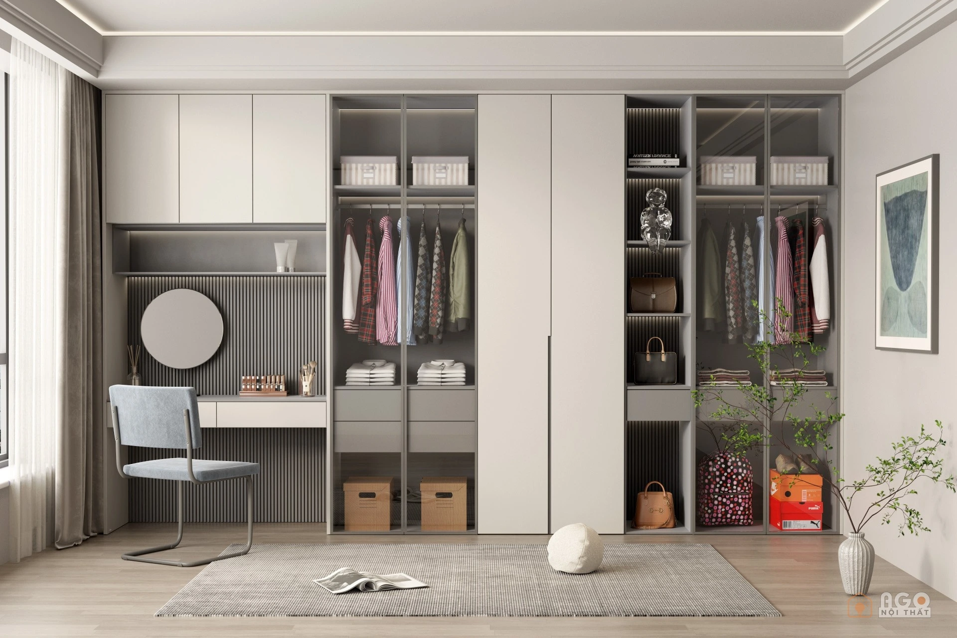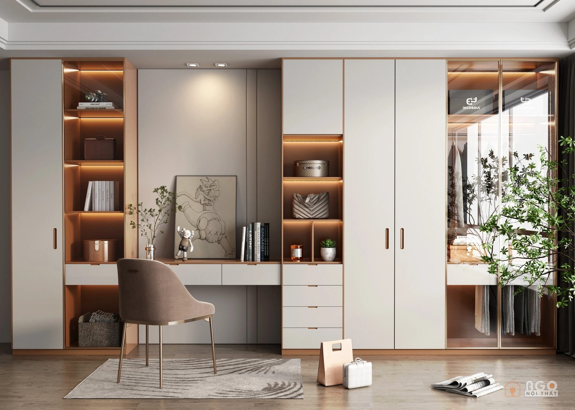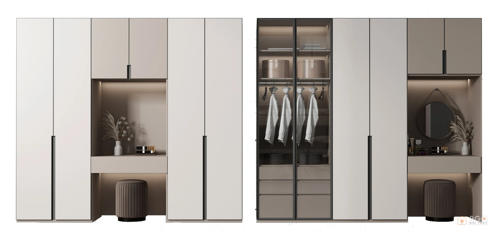 Hệ tủ áo kết hợp bàn trang điểm hoặc bàn làm việc