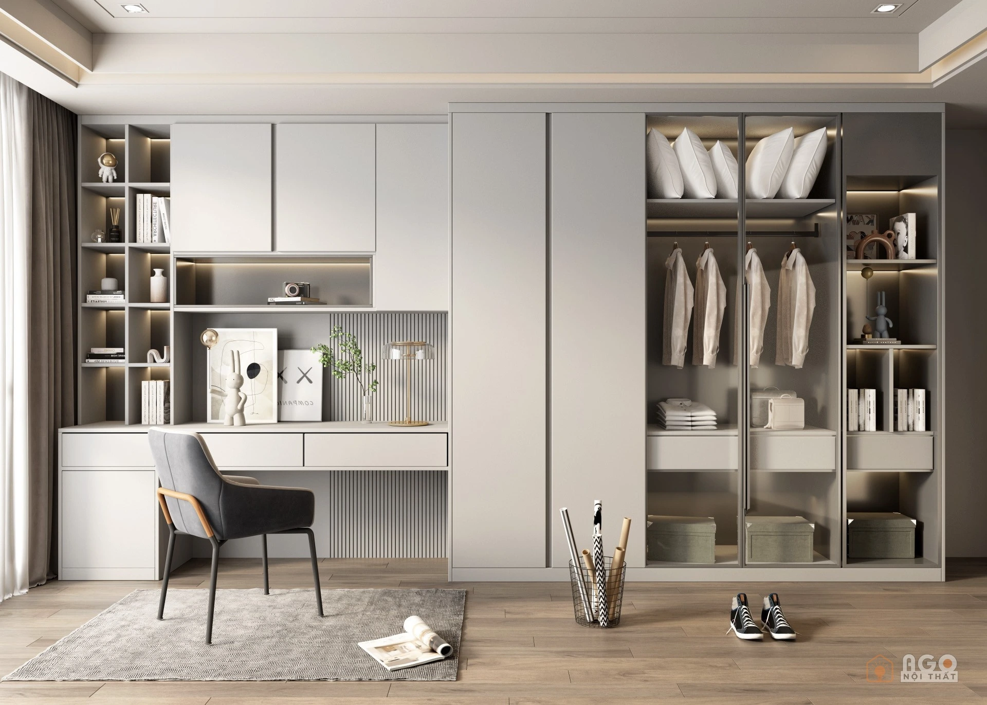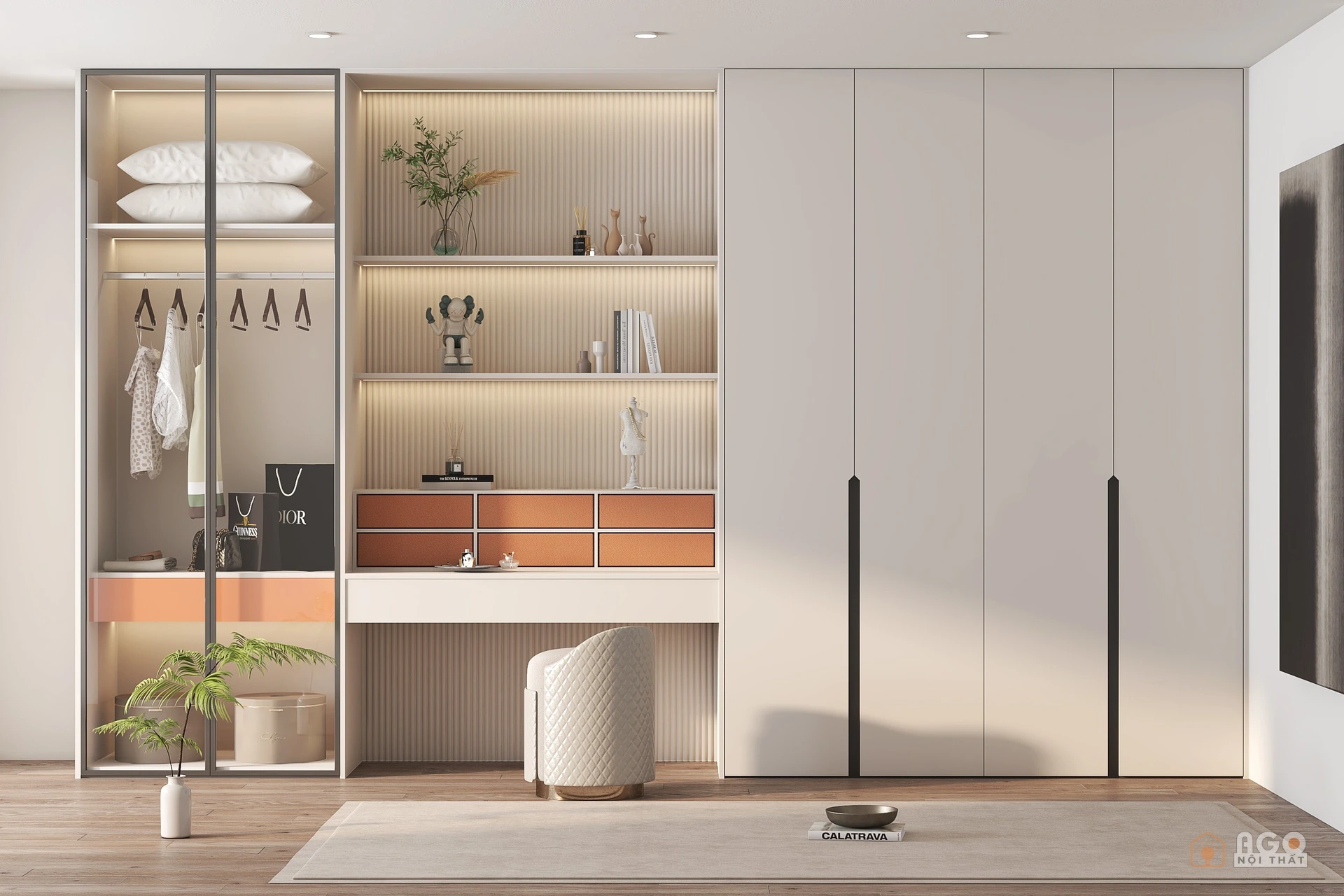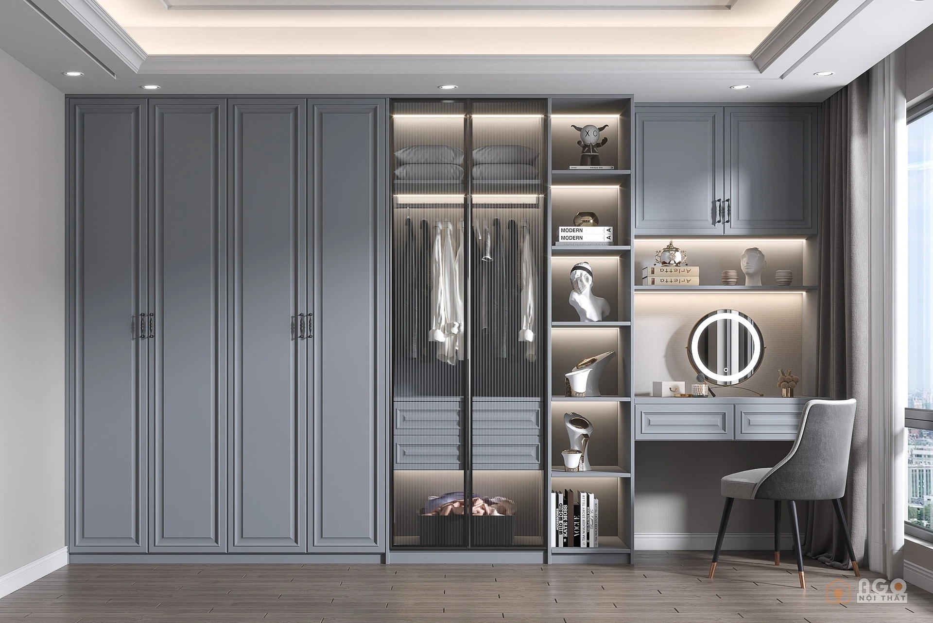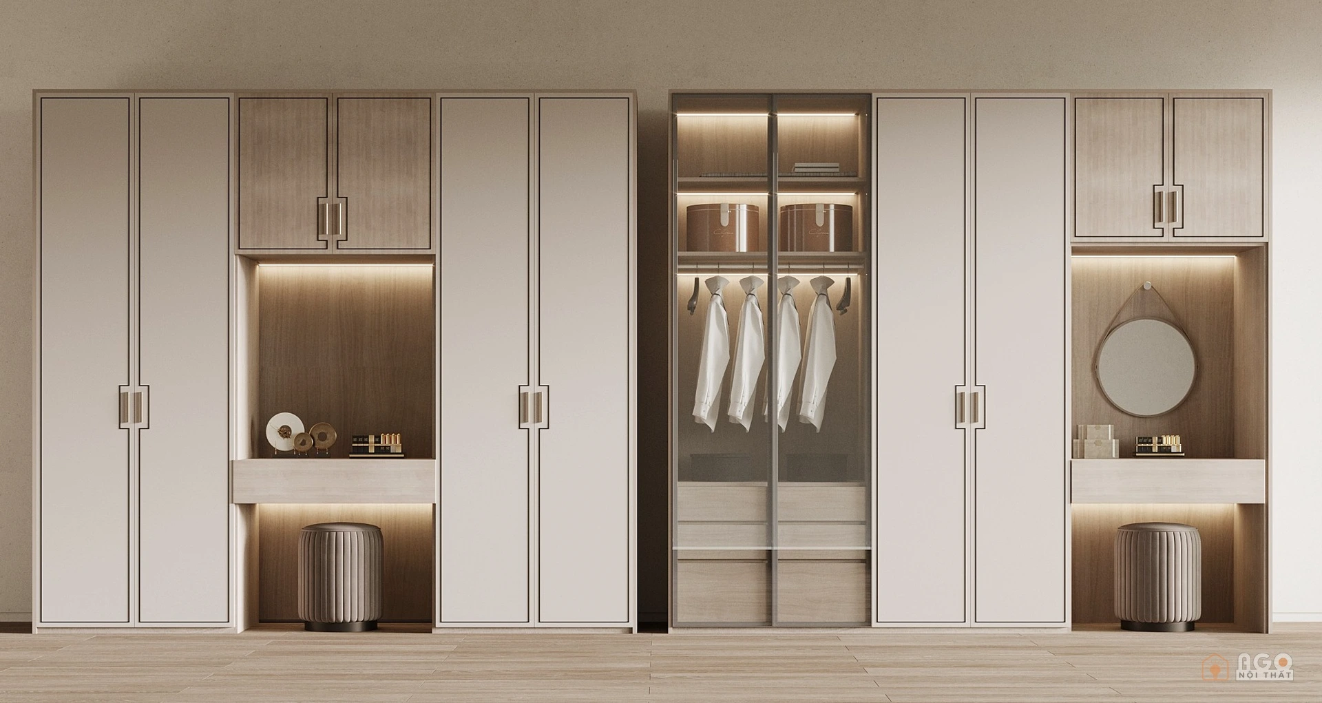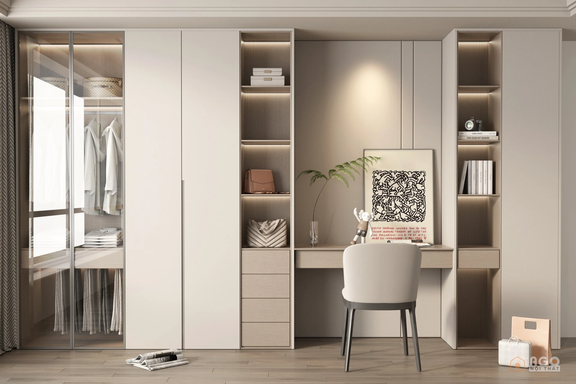 Hệ tủ áo kết hợp bàn trang điểm hoặc bàn làm việc