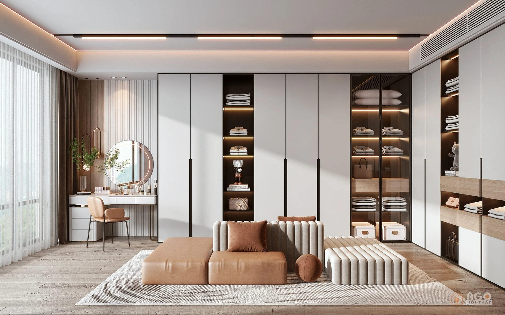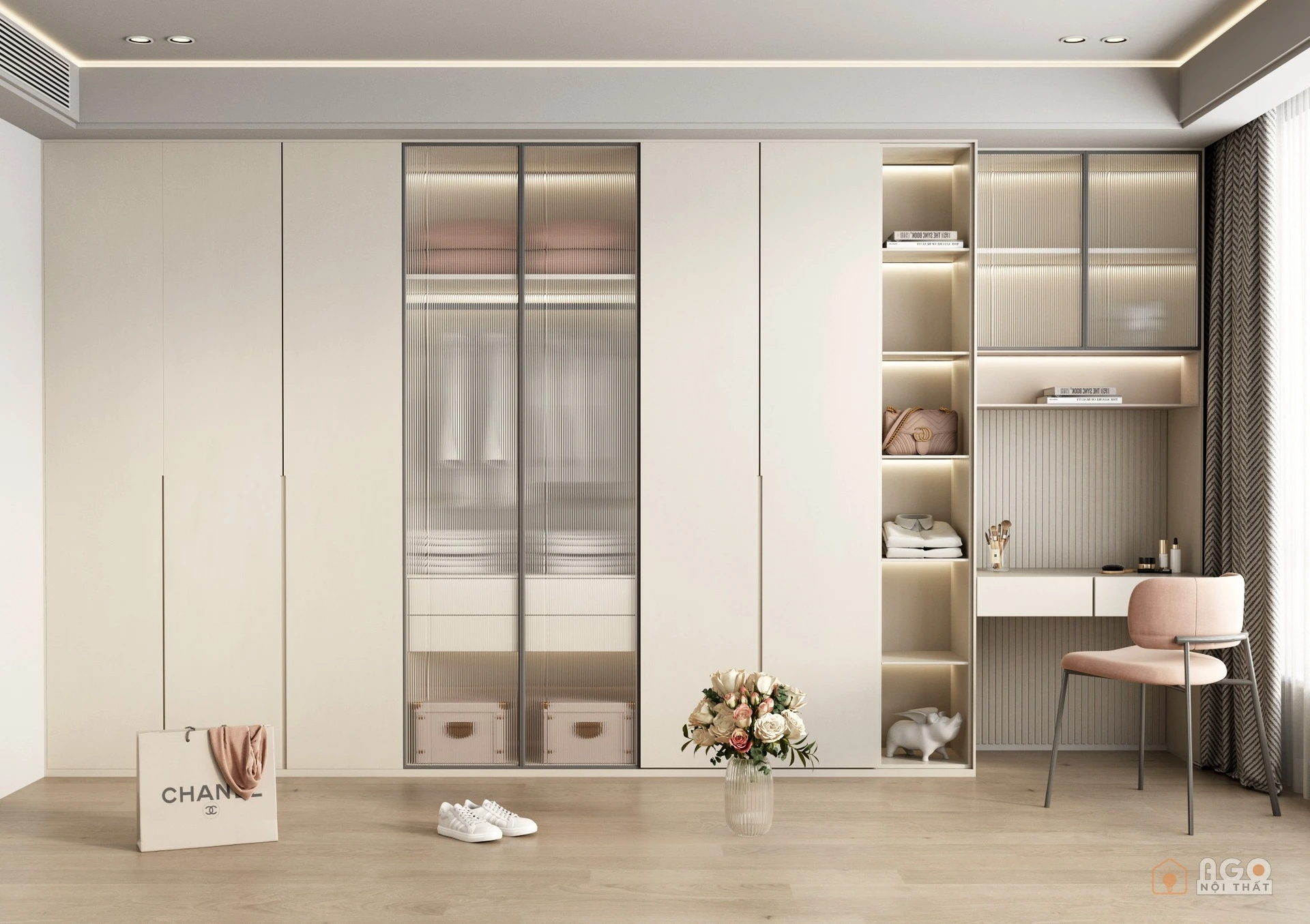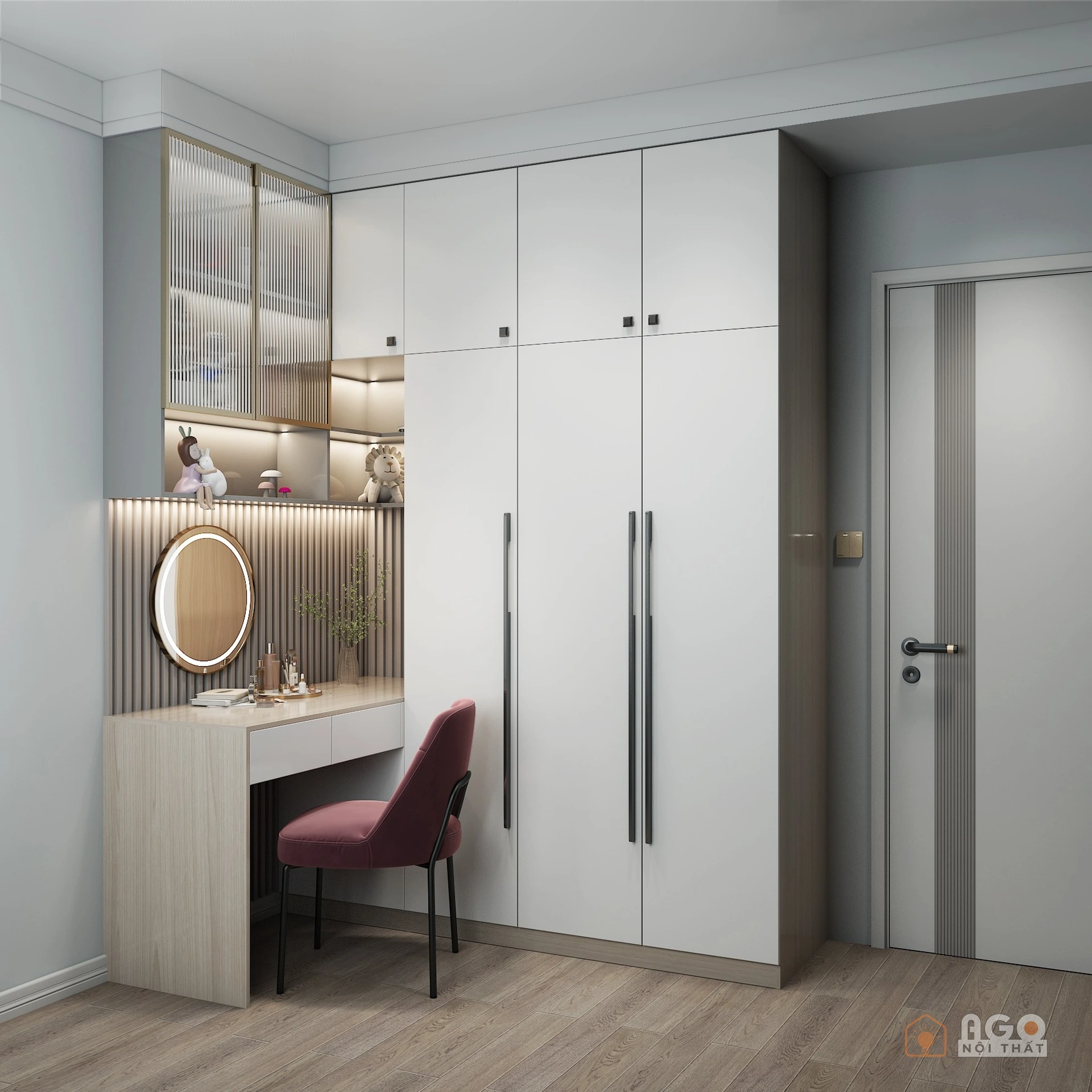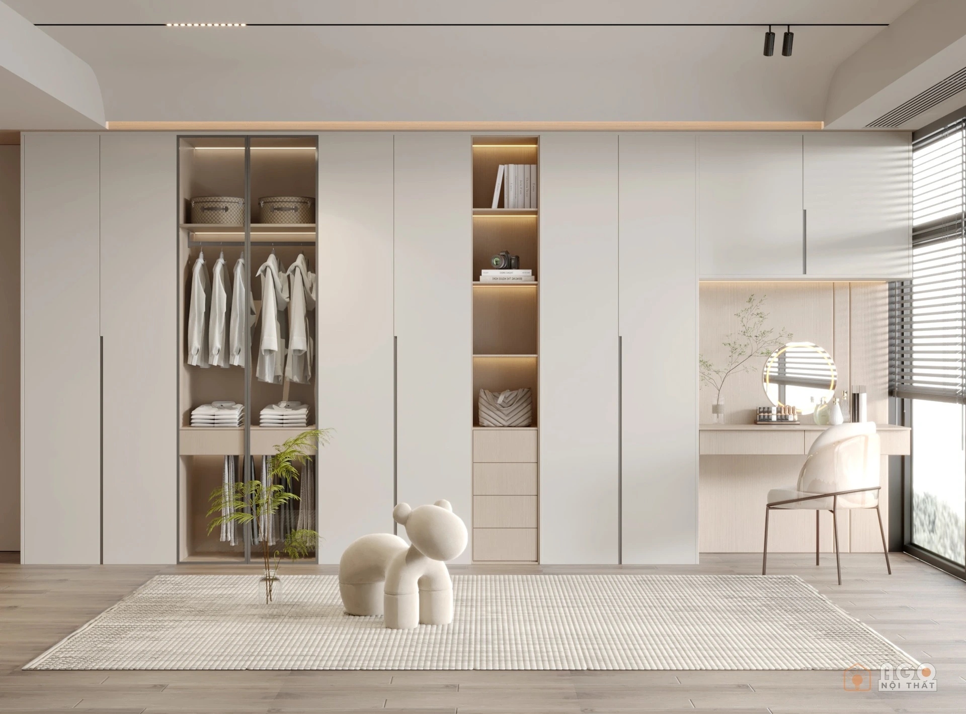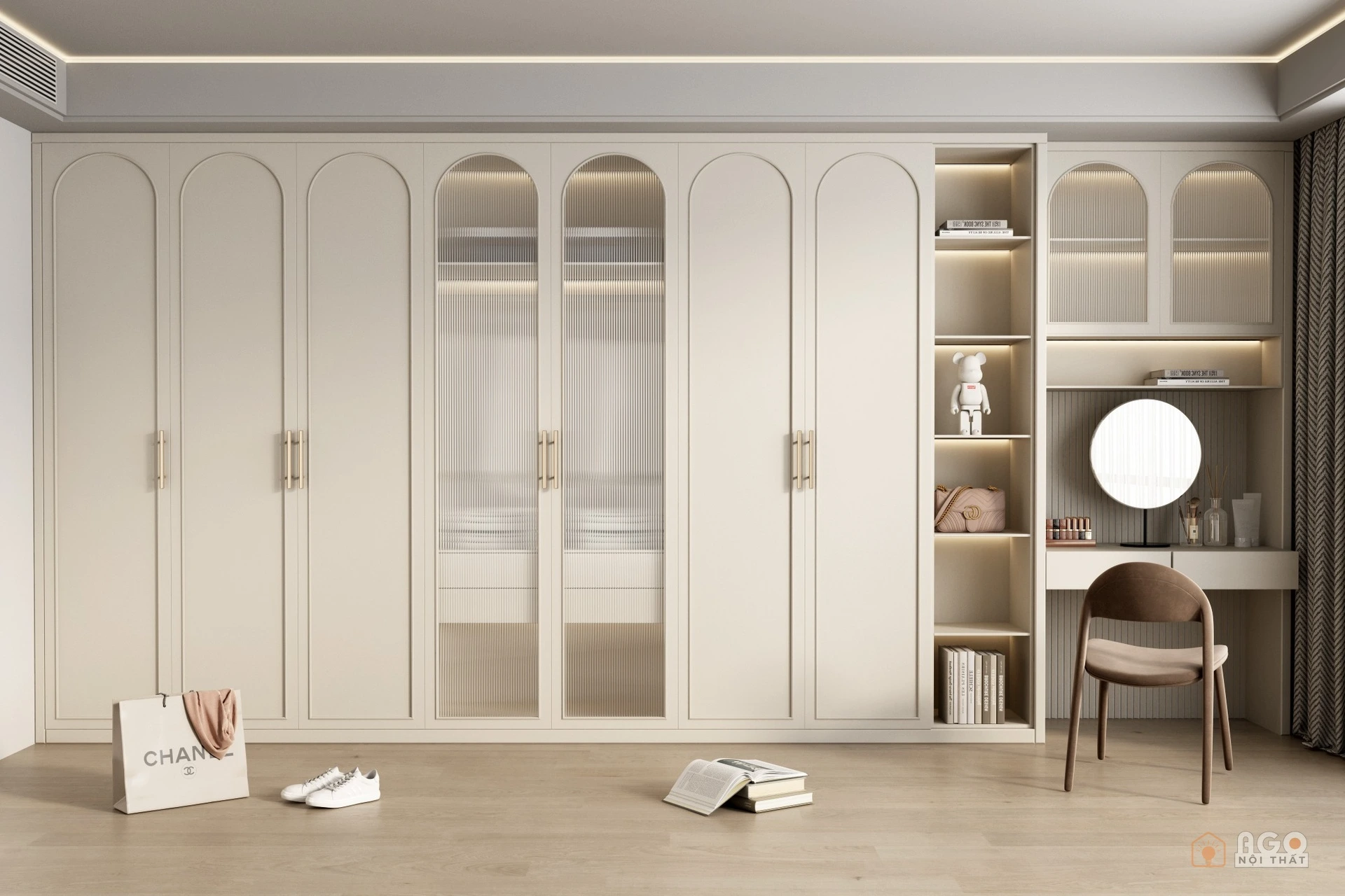 Hệ tủ áo kết hợp bàn trang điểm hoặc bàn làm việc