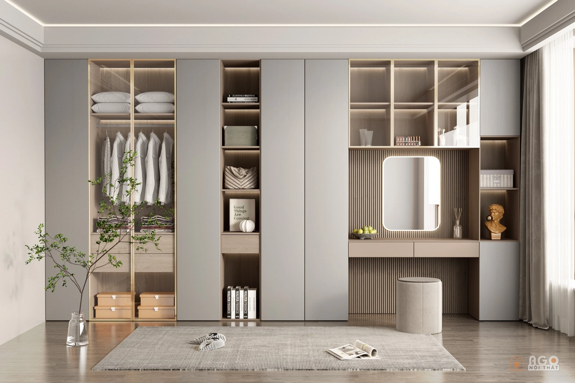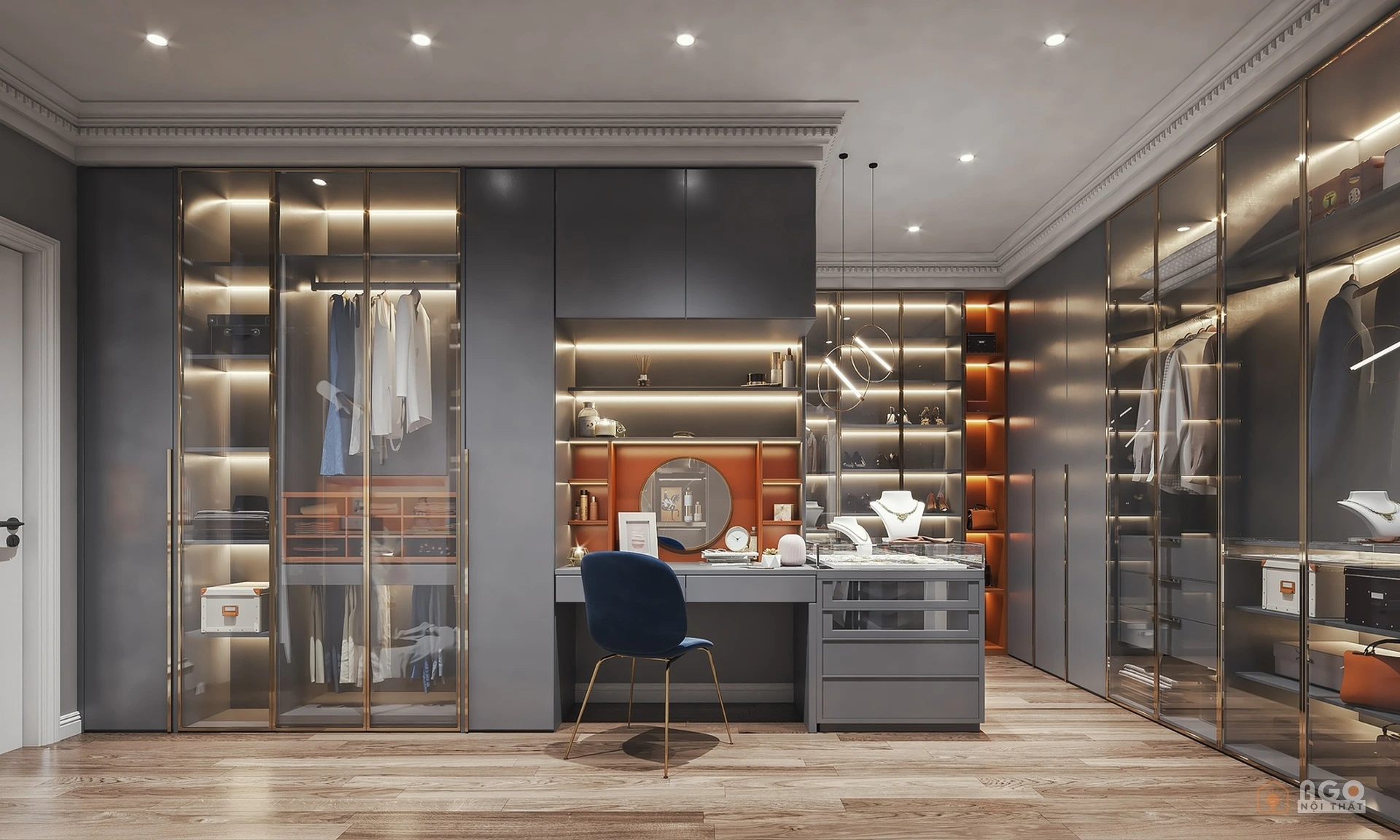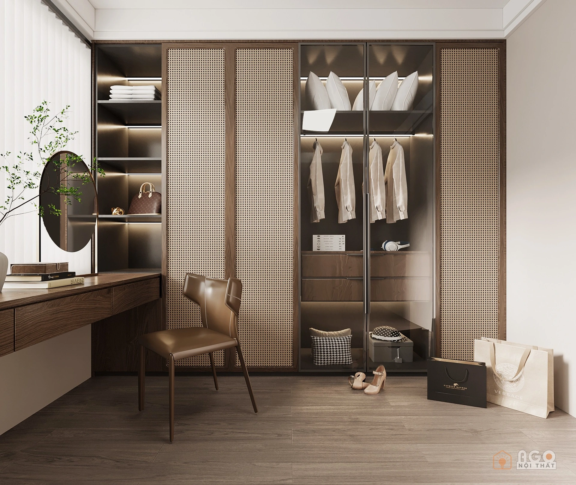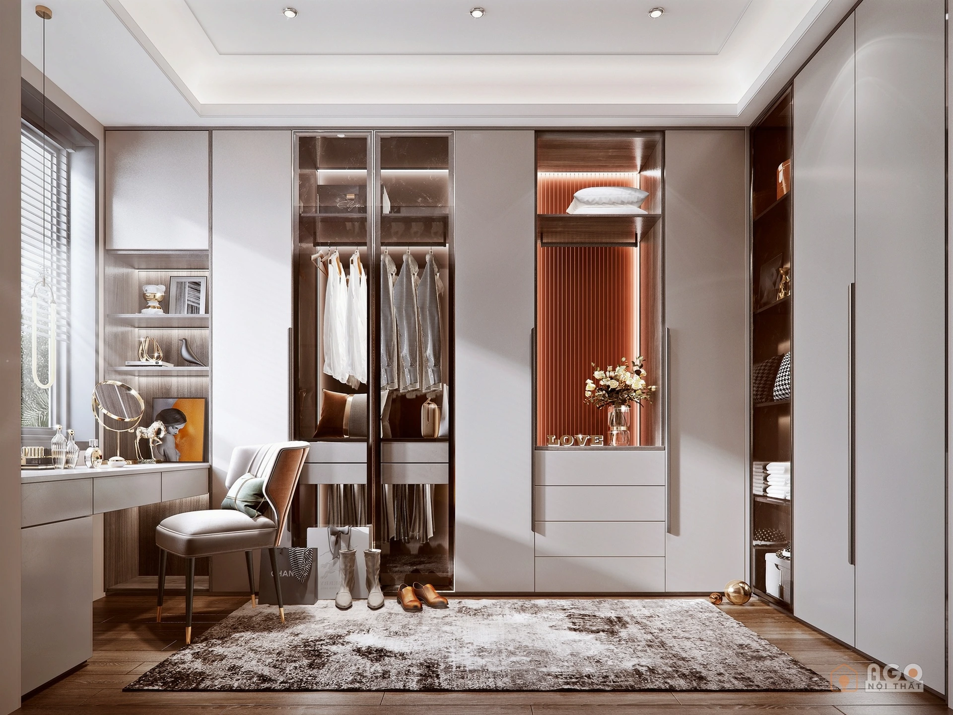 Hệ tủ áo kết hợp bàn trang điểm hoặc bàn làm việc
