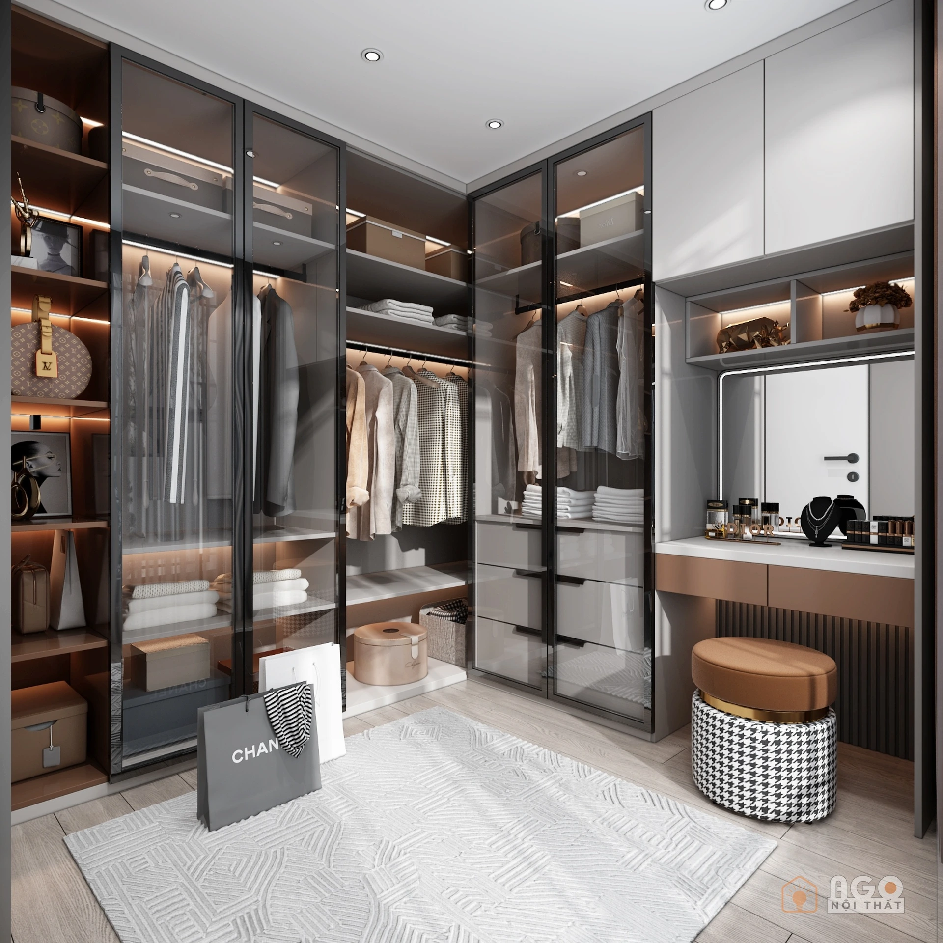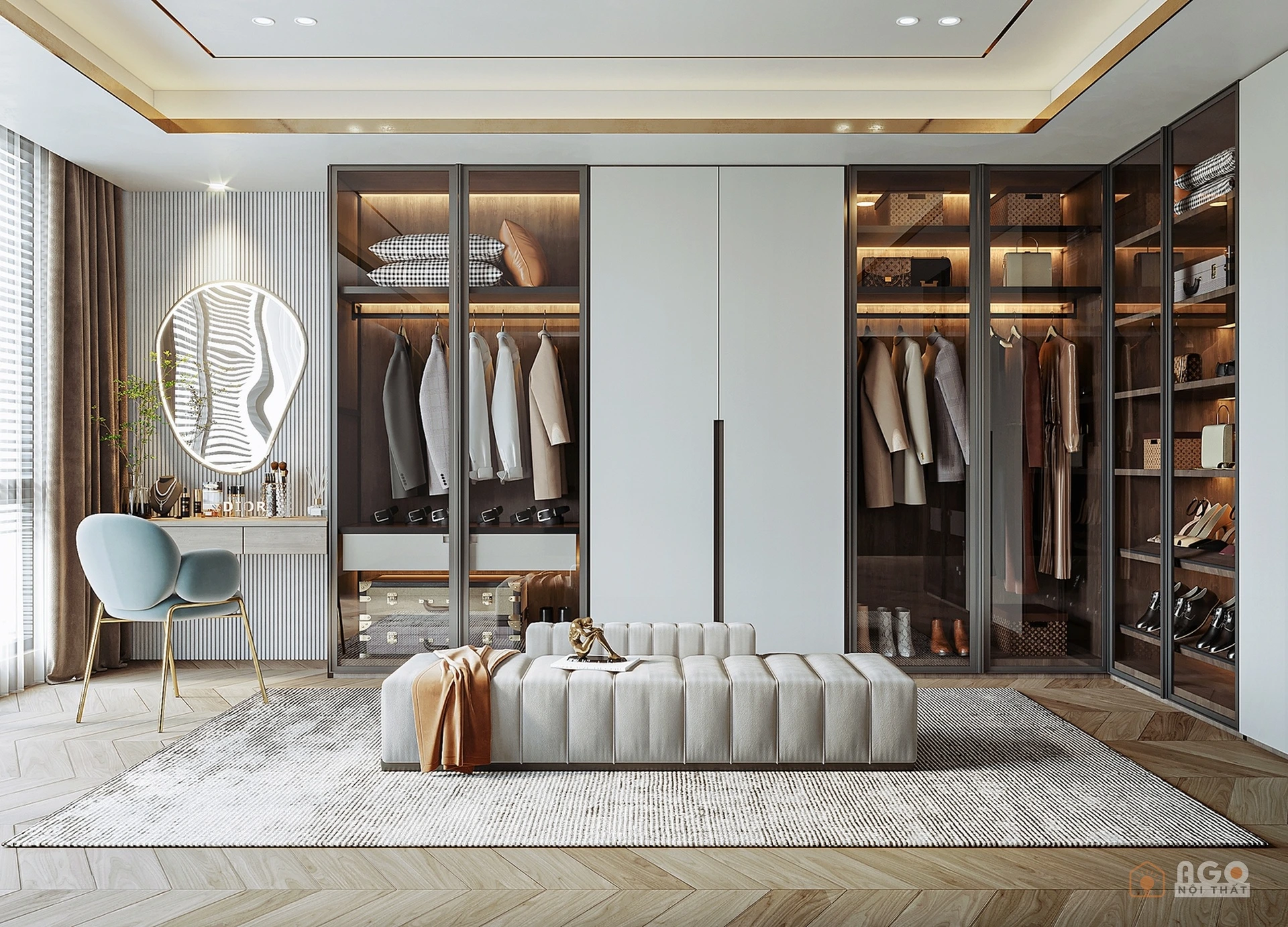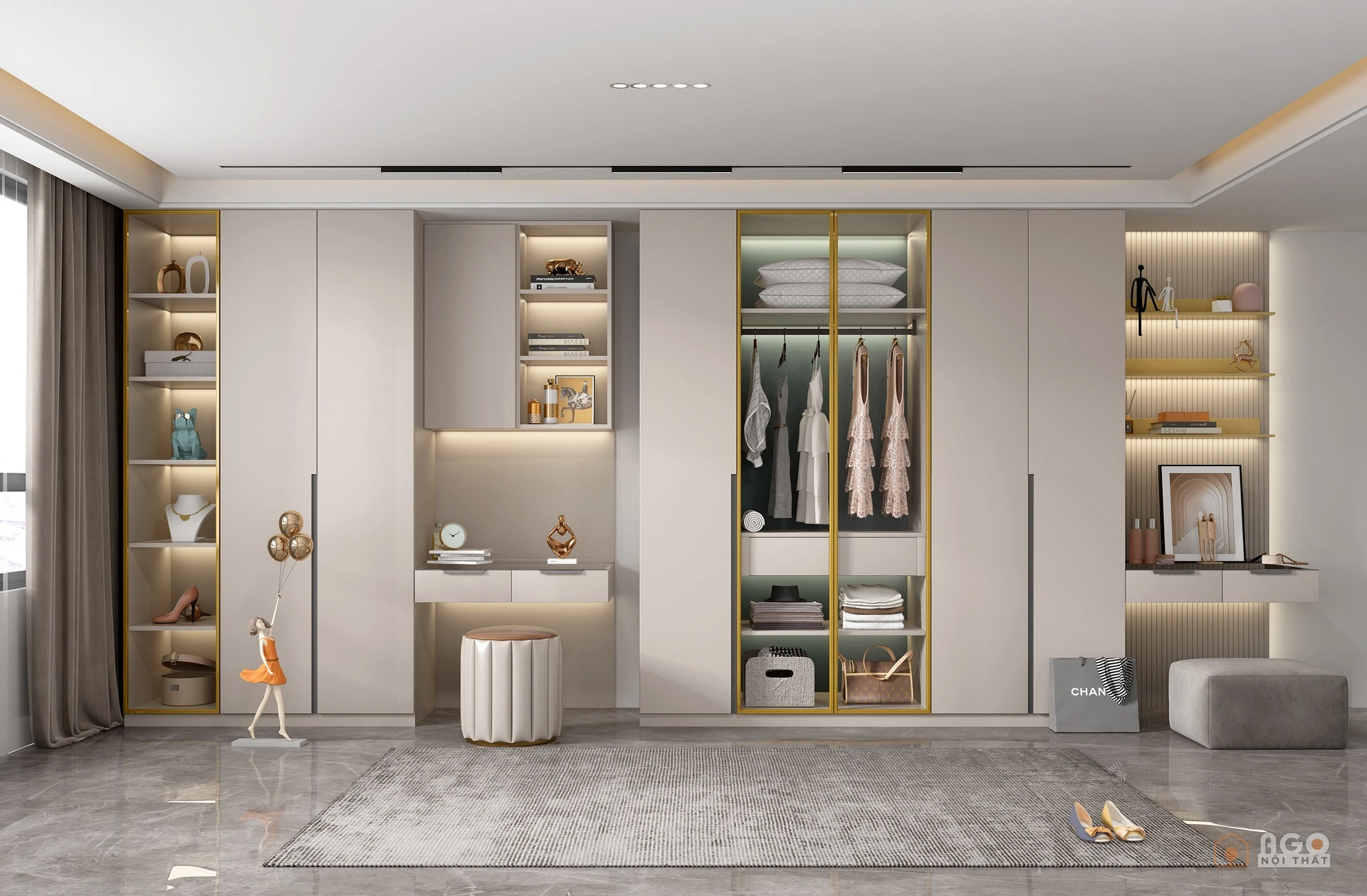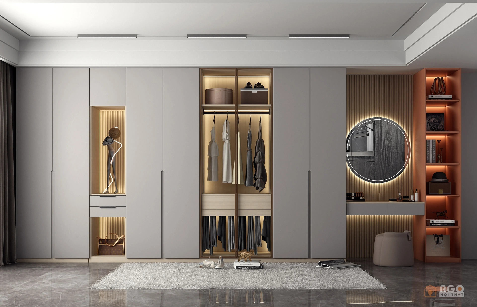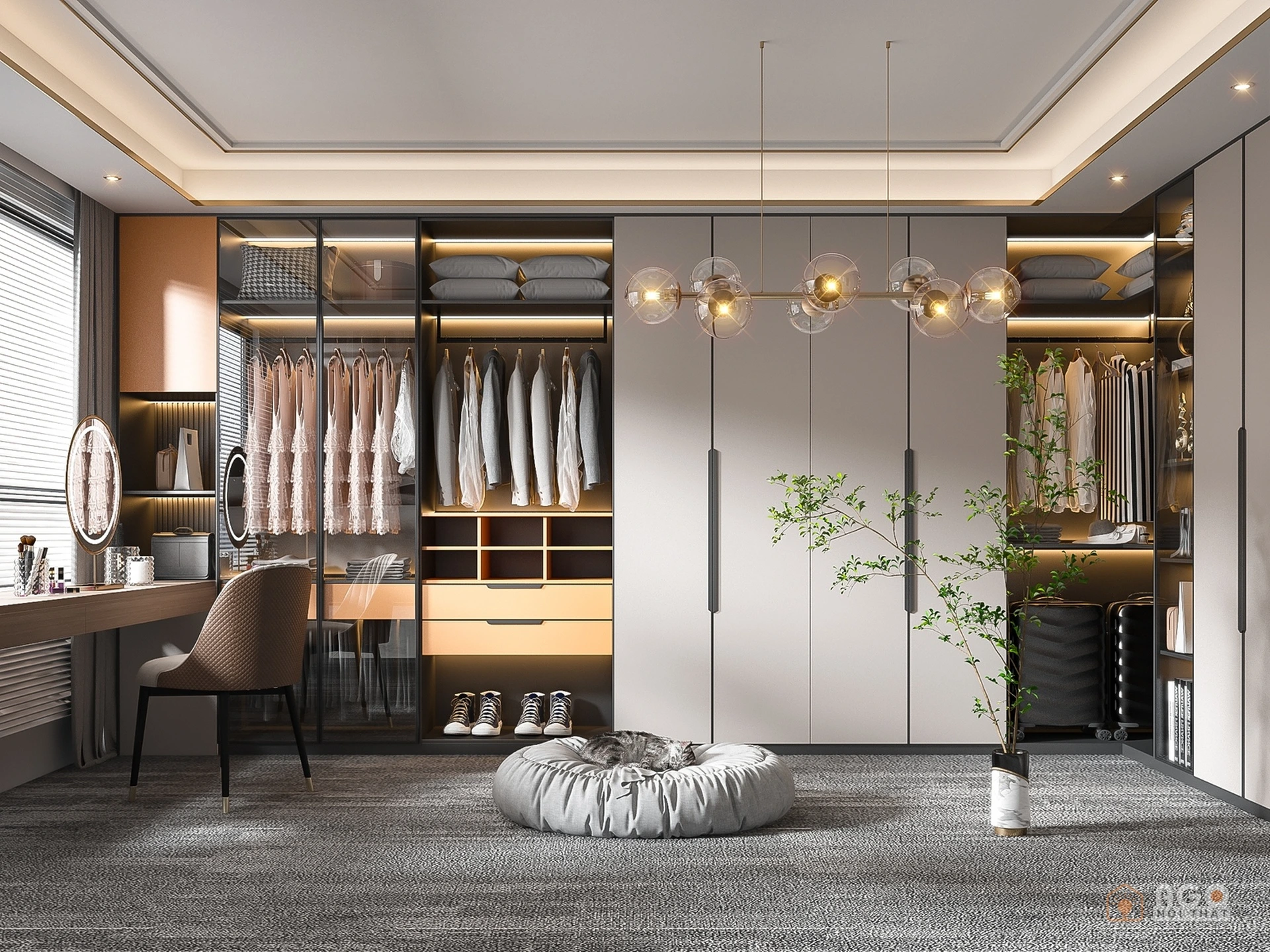Hệ tủ áo kết hợp bàn trang điểm hoặc bàn làm việc