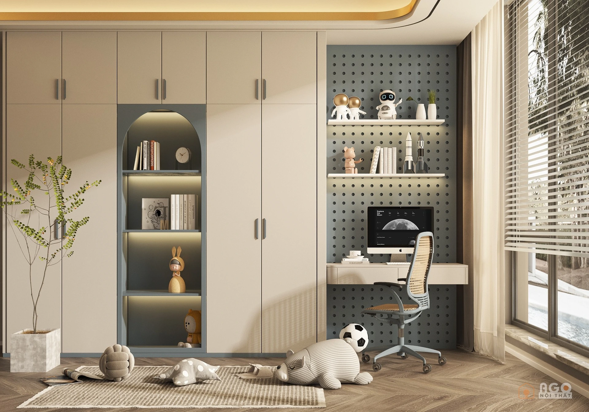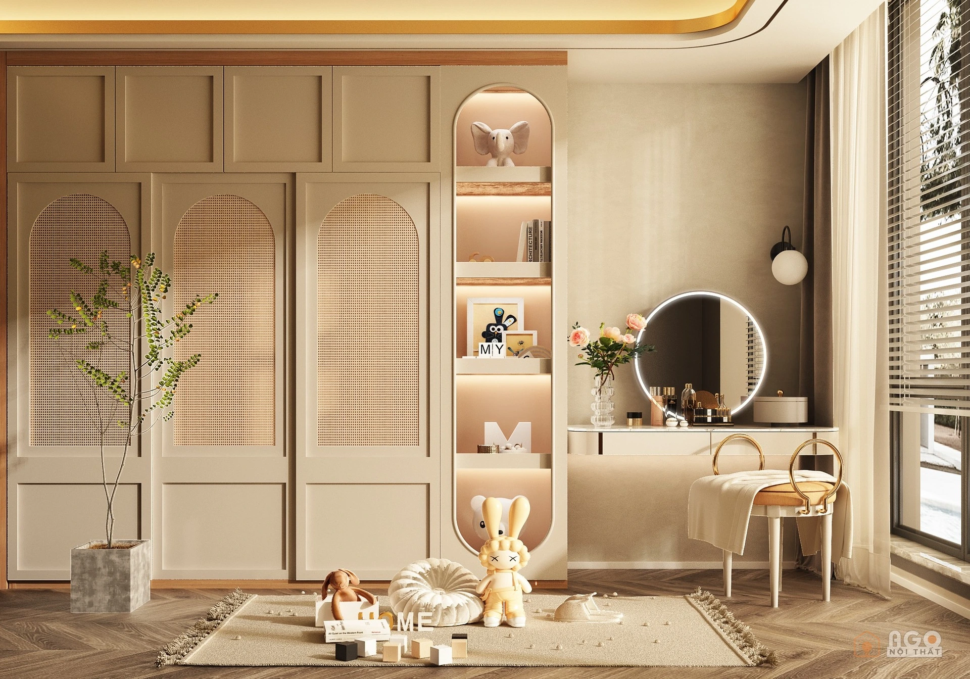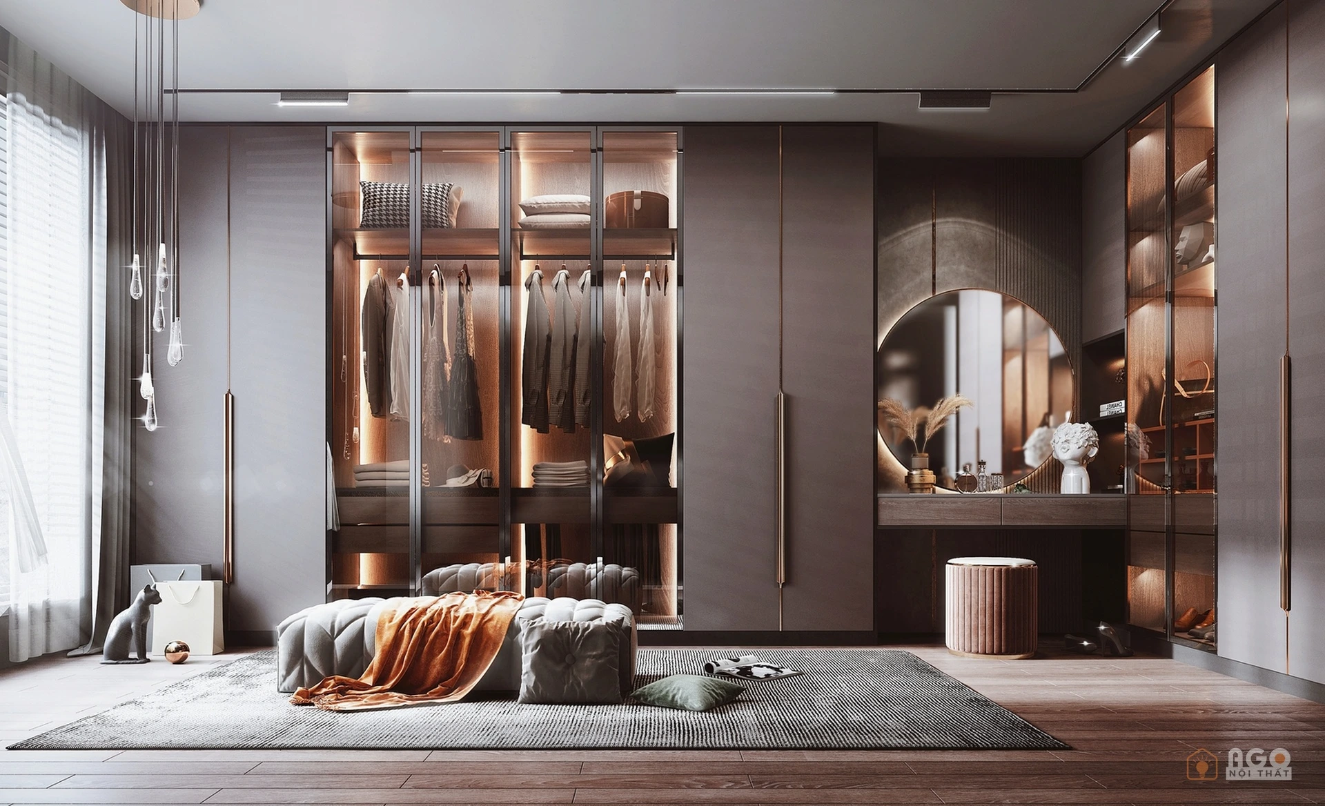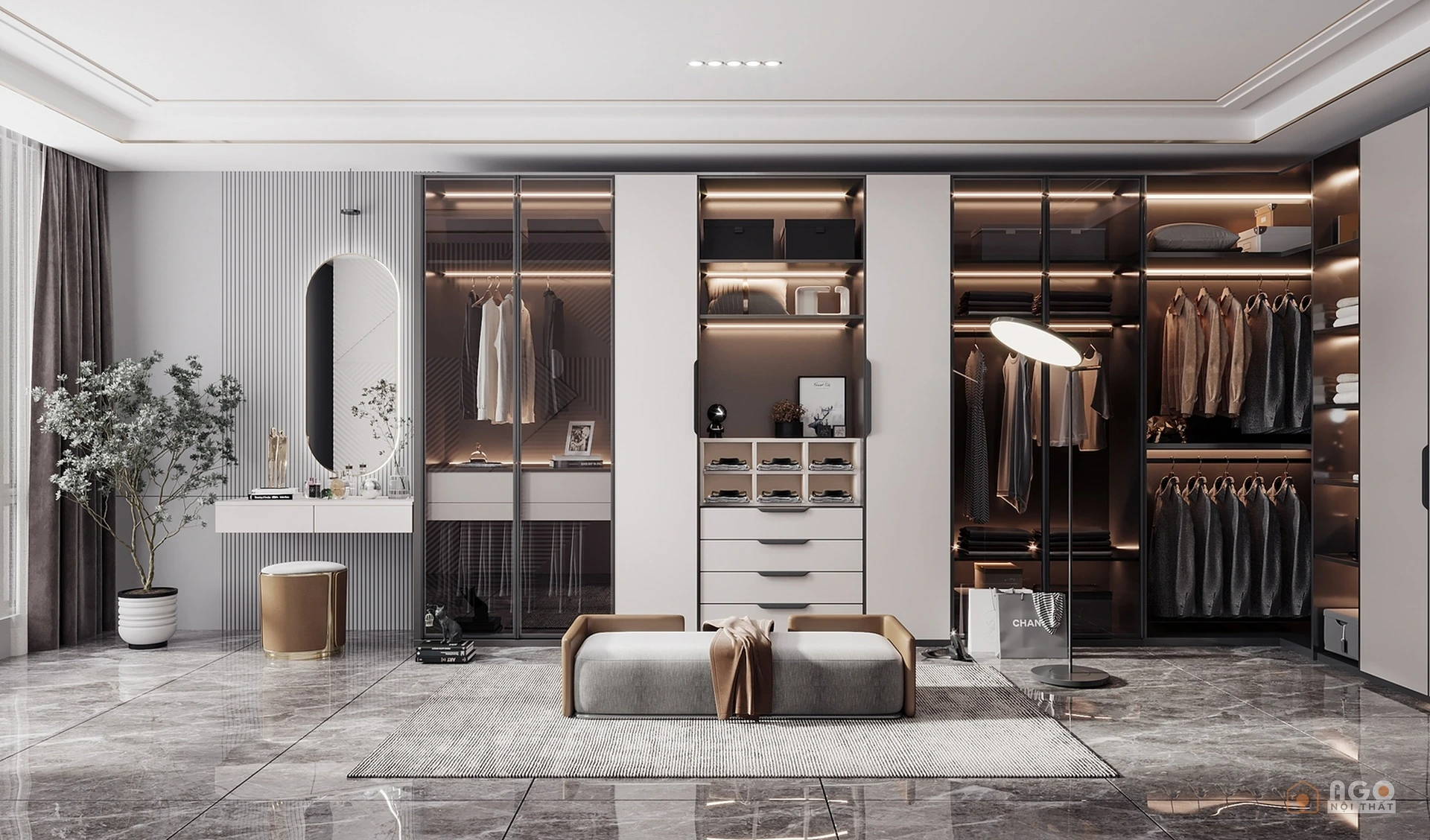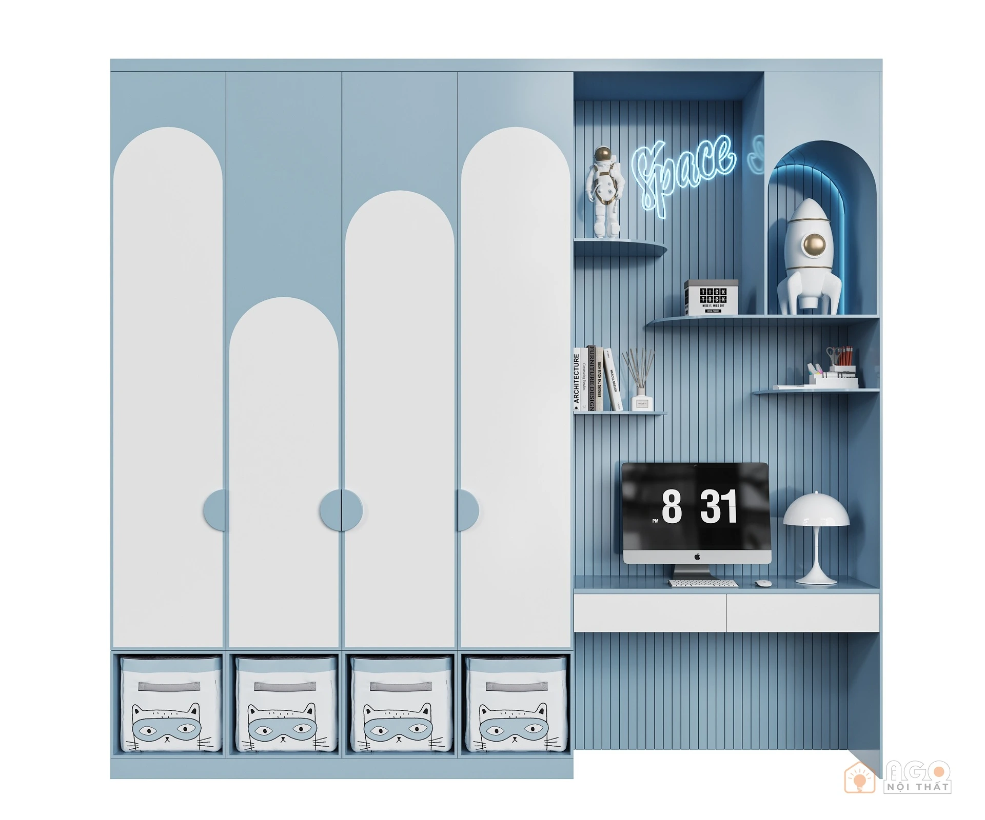 Hệ tủ áo kết hợp bàn trang điểm hoặc bàn làm việc